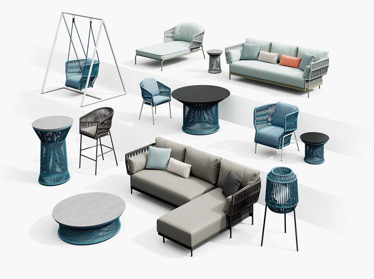 The collection features simple architectural lines to complement modern residential and contemporay hospitality projects, while delivering original tones and textures with specially selected roping and fabrics.